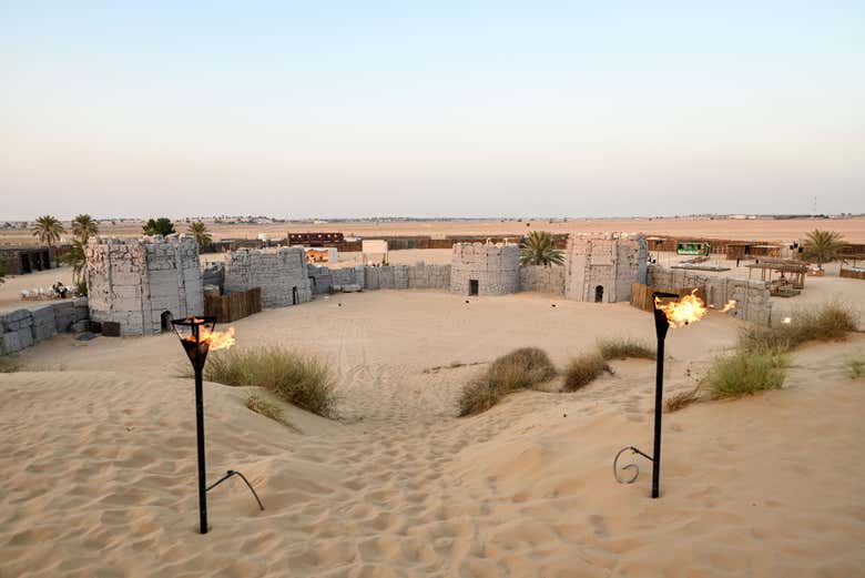 Avrete anche l'opportunità di provare la shisha, fare un giro in quad o in buggy o semplicemente rilassarvi sulla terrazza del campo. Quando la fame si farà sentire, ci prepareremo a gustare un barbecue con prodotti di stagione accompagnata da due bibite. Il tutto con Fort Lisaili sullo sfondo, una ricostruzione contemporanea ispirata all'architettura tradizionale emiratina.